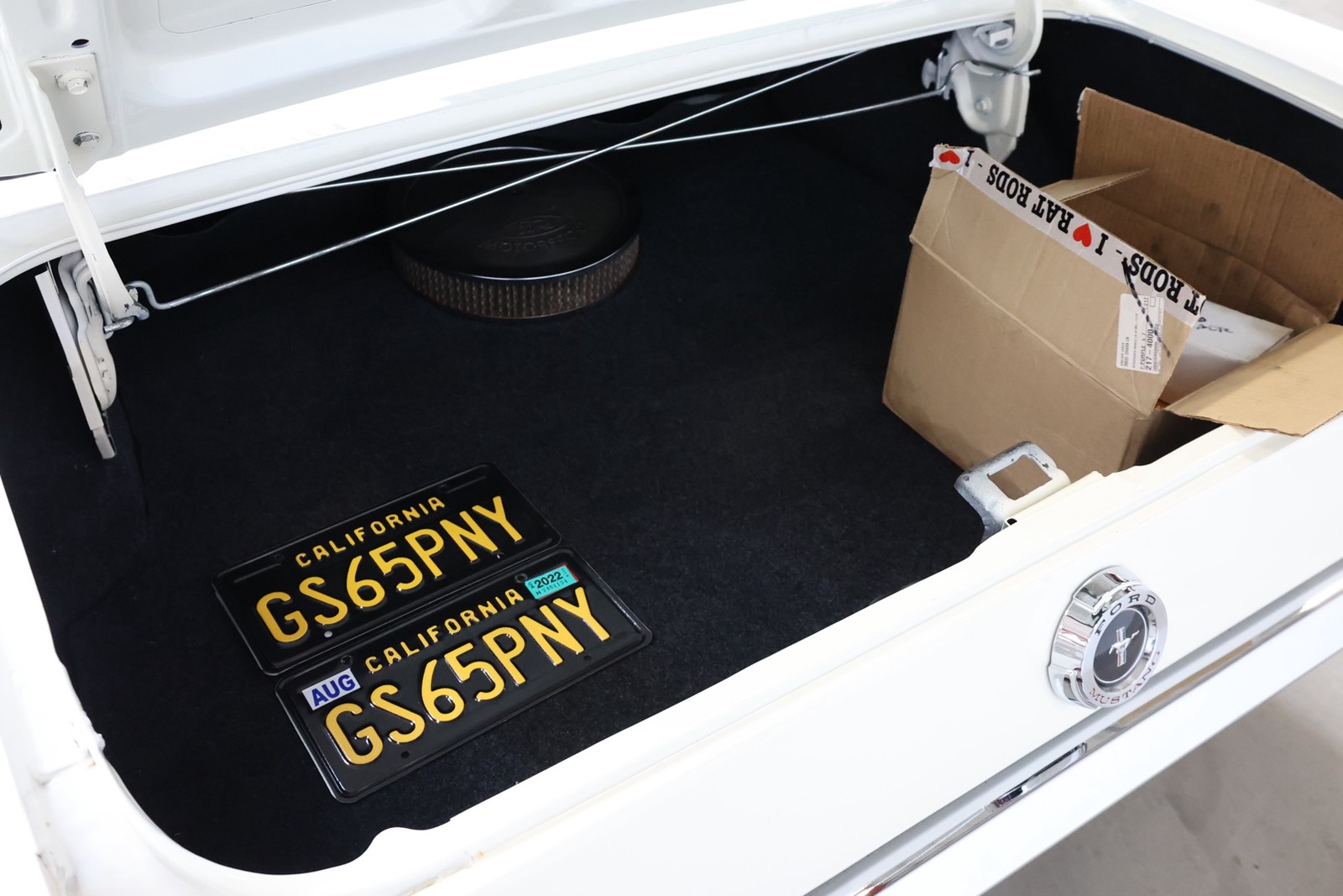 Rheingold Classics bietet dieses 65er Ford Mustang Coupé im Kundenauftrag zum Verkauf an. Dieser Mustang ist schon ein paar Jahre auf deutschen Straßen unterwegs, 2022 hatte der Besitzer den Mustang selbst aus Kalifornien importiert. Noch in den USA wurde laut Besitzer ein frischer 5.0 Liter V8 Motor verbaut, der zusätzlich mit einer Edelbrock Ansaugbrücke und einem Edelbrock Vergaser ausgestattet ist, zudem sind Fächerkrümmer verbaut. Der Motor läuft hervorragend und liefert richtig gute Leistung.