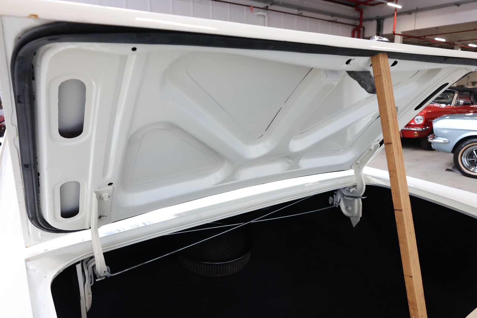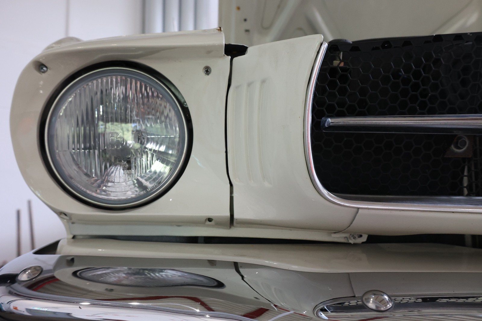 Dem aktuellen Besitzer ist einmal während er Fahrt die Motorhaube nach oben geschnellt, weil sie nicht richtig geschlossen war, so dass diese nun in der Mitte einen leichten Knick hat. Eventuell, das ist aber nicht zwingend notwendig, könnte diese durch eine neue ersetzt werden. Aktuell sitzt diese nicht richtig, es ist aber nur ein keiner Schönheitsmakel, ansonsten bietet der Mustang einen absolut starken Auftritt, lassen Sie sich davon also nicht abschrecken, nach immerhin 60 Jahren kann nicht mehr alles perfekt sein.