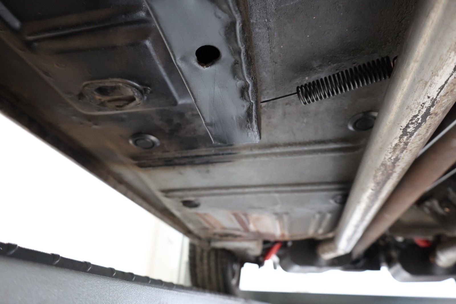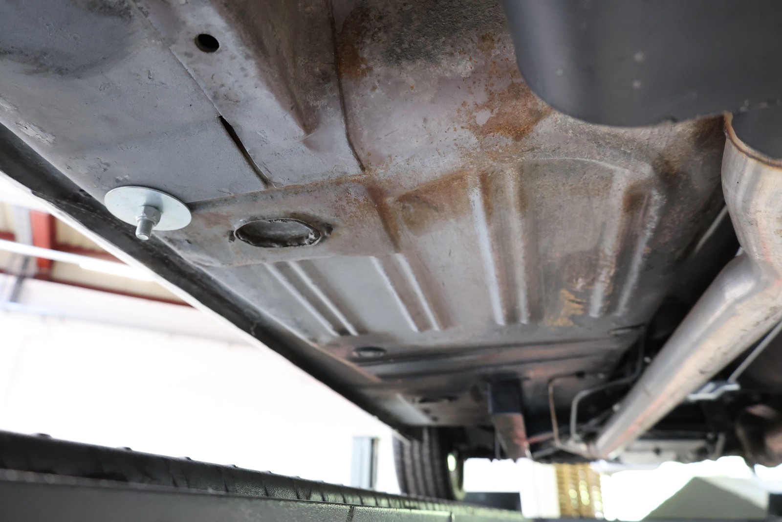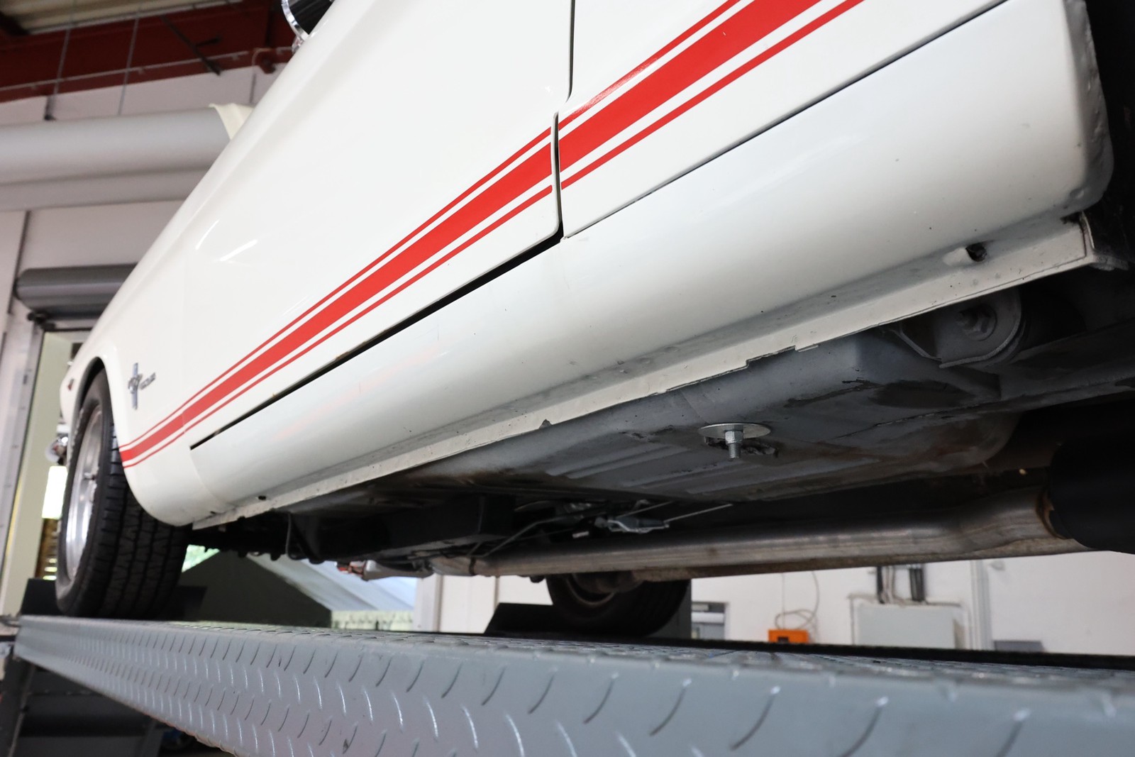 Allgemein handelt es sich hier um einen soliden Mustang mit anständiger Substanz. Der Unterboden ist absolut original, nur an einer kleinen Stelle wurde nachgearbeitet und geschweisst, annsonsten ist dieser wirklich ganz hervorragend. Natürlich lässt sich Flugrost finden, so wie es bei einem blanken Blech, das bereits 60 Jahre alt ist, wahrscheinlich normal ist. Trotzdem darf man über einen rostfreien Unterboden sprechen, da es keinerlei große Probleme gibt. Es empfiehlt sich in Zukunft eventuell den Unterboden mit Trockeneis strahlen zu lassen, um ihn dann entsprechend zu konservieren.