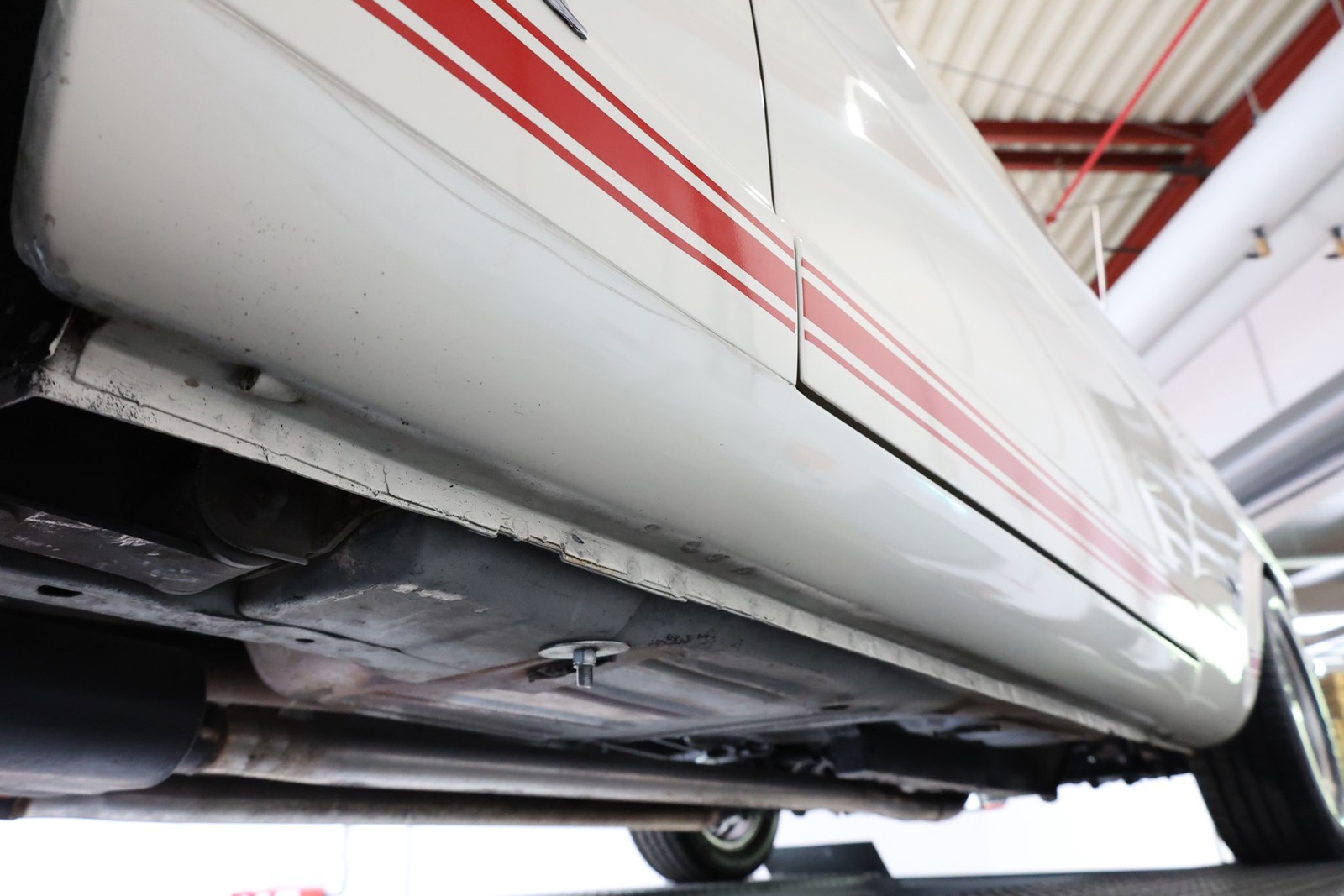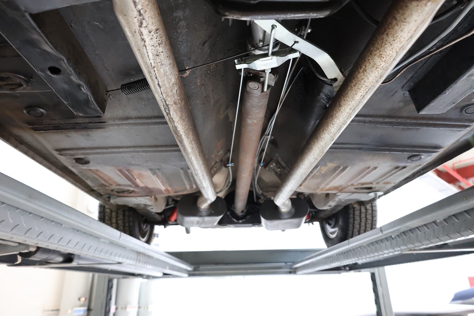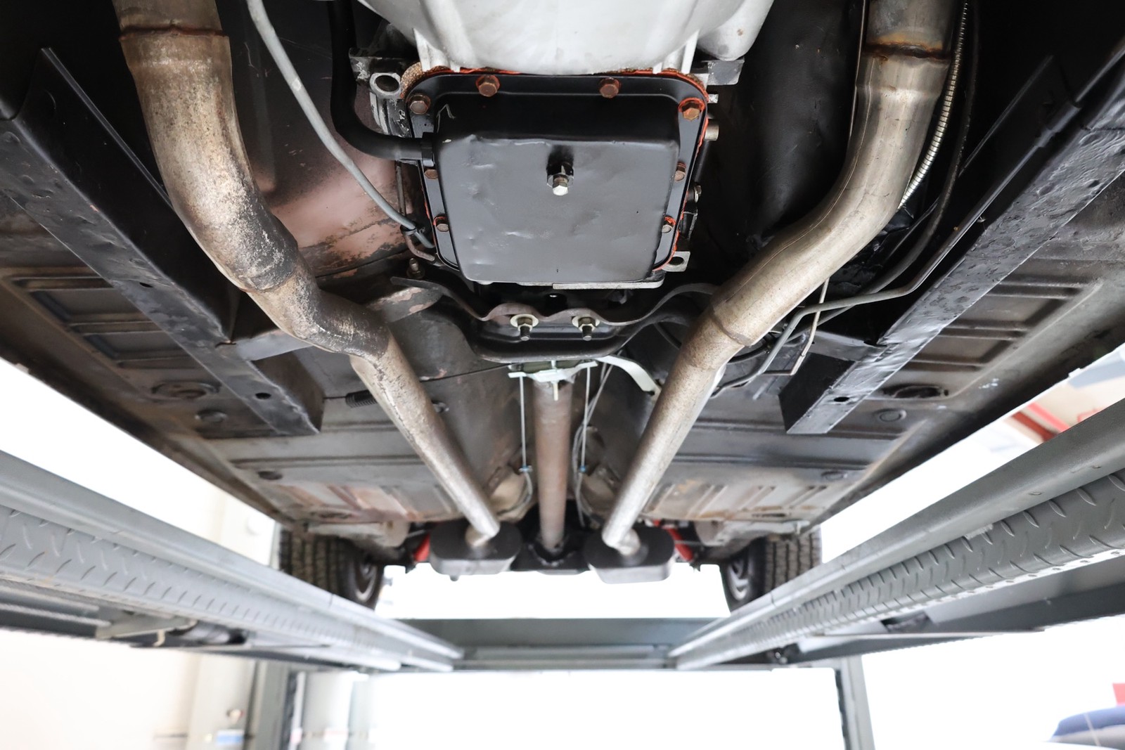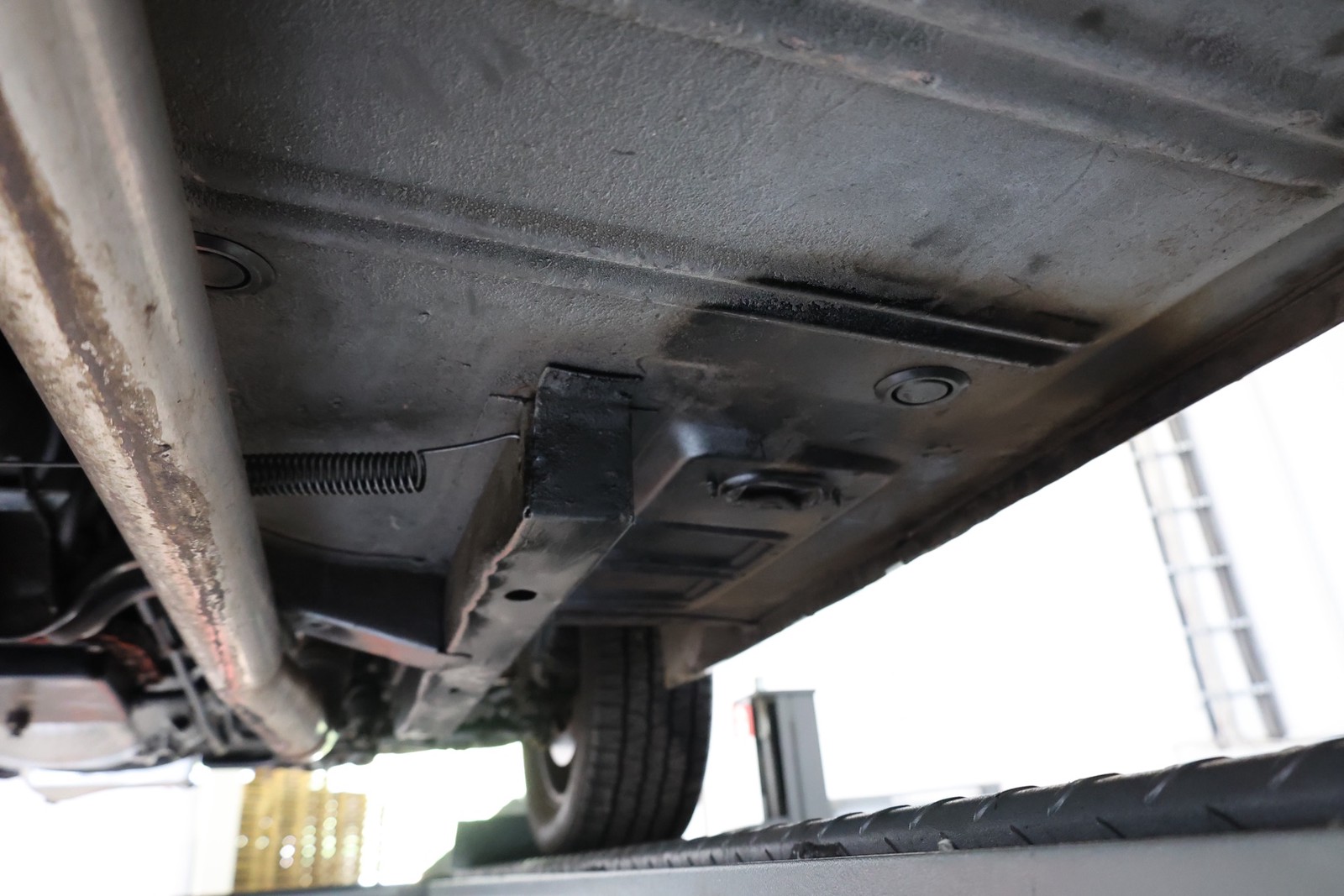 Allgemein handelt es sich hier um einen soliden Mustang mit anständiger Substanz. Der Unterboden ist absolut original, nur an einer kleinen Stelle wurde nachgearbeitet und geschweisst, annsonsten ist dieser wirklich ganz hervorragend. Natürlich lässt sich Flugrost finden, so wie es bei einem blanken Blech, das bereits 60 Jahre alt ist, wahrscheinlich normal ist. Trotzdem darf man über einen rostfreien Unterboden sprechen, da es keinerlei große Probleme gibt. Es empfiehlt sich in Zukunft eventuell den Unterboden mit Trockeneis strahlen zu lassen, um ihn dann entsprechend zu konservieren.