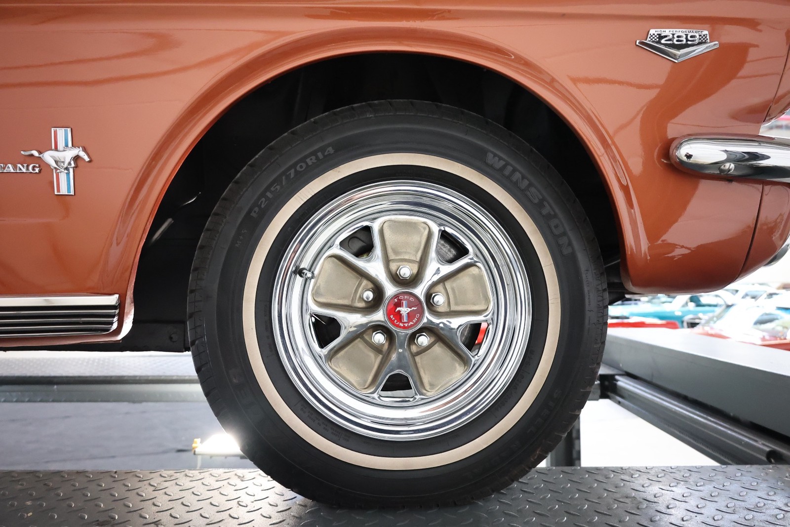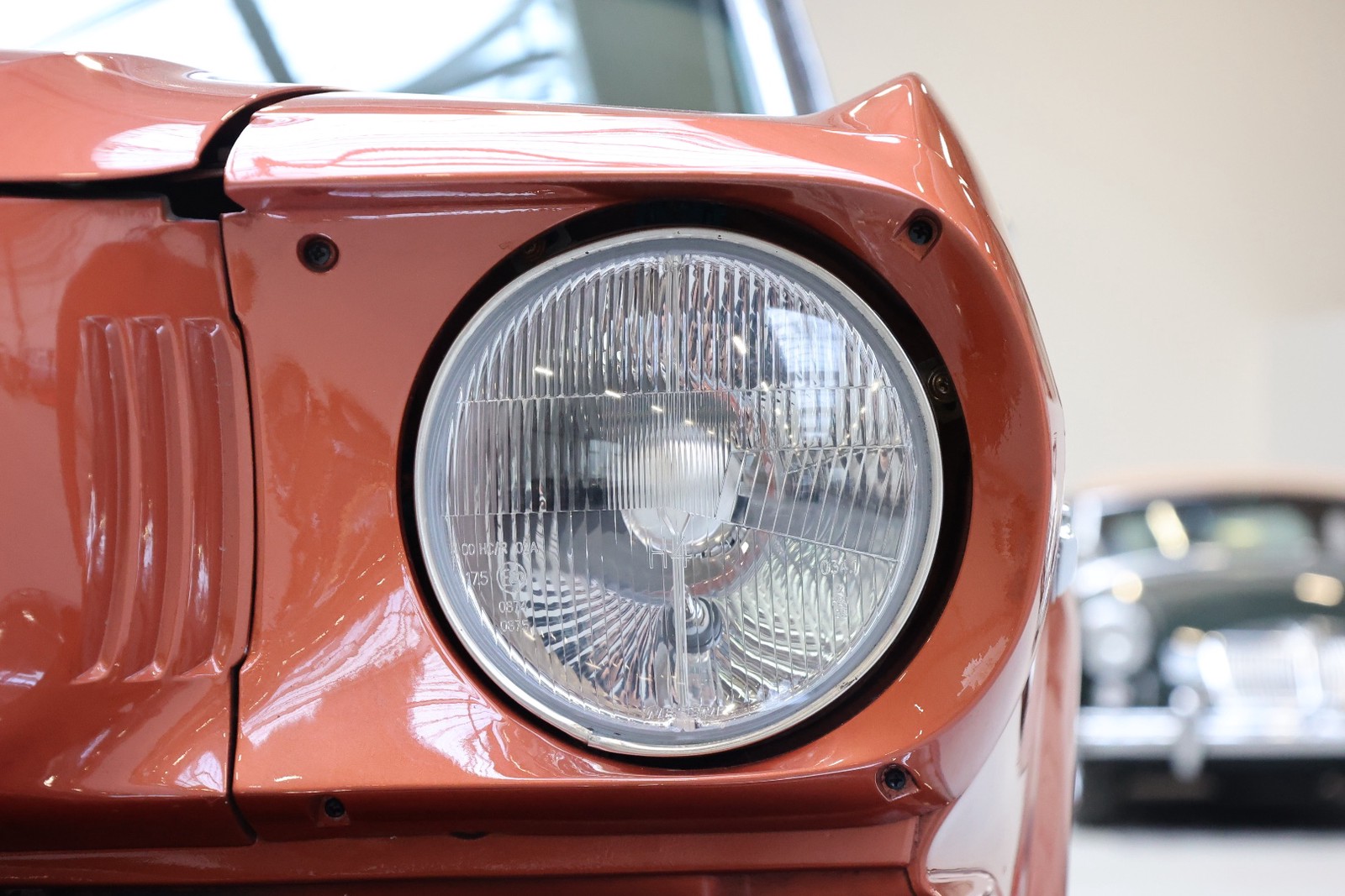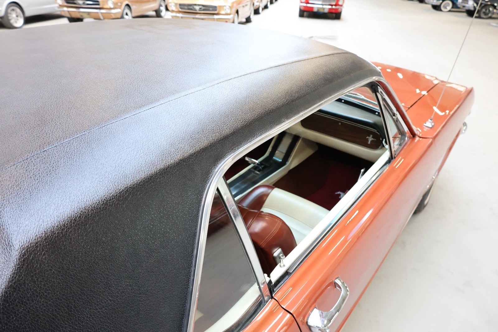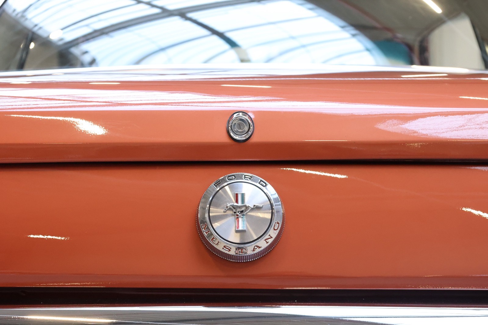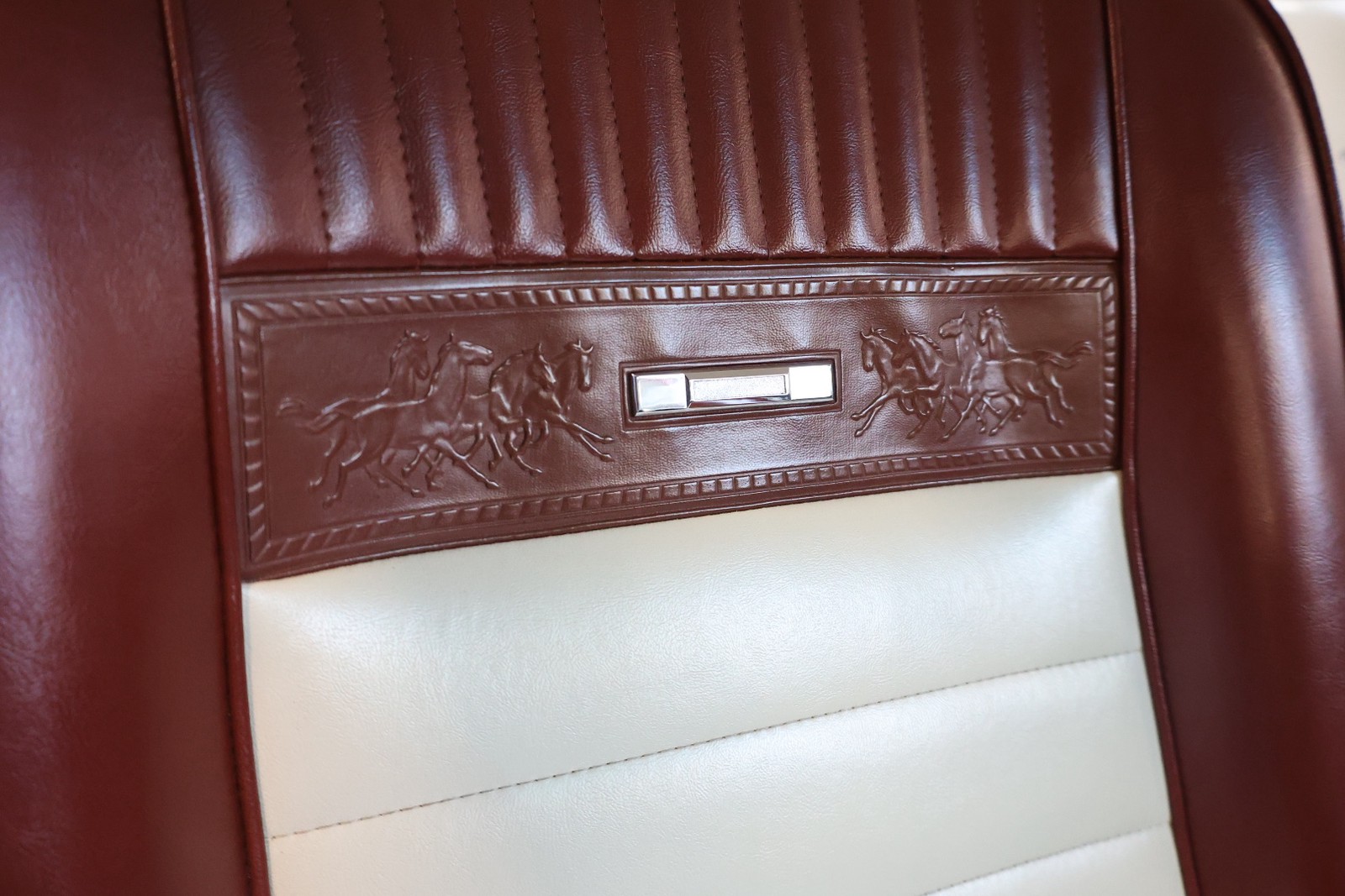 Sprechen wir gerne etwas mehr über die Blechbeschaffenheit dieses Ponys. Die Karosserie befindet sich einem sehr schönen und originalen Zustand. Die schöne Lackierung in Emberglow wurde vor etwa 10 Jahren neu gemacht, sie präsentiert sich mit viel Glanz und ist in einem ganz tollen Zustand. Original wurde das Pony in dieser Farbe ausgeliefert, die es auch nur 1966 für den Mustang in dieser Form gab. Oftmals werden Mustangs in anderen Farben umlackiert, schön ist es doch, wenn sich das Auto auch 60 Jahre später immer noch in der gleichen Farbe zeigt. Das schwarze Vinyldach befindet sich ist in einem tadellosen Zustand und weist keinerlei Rostprobleme auf. Die Innenausstattung ist im zweifarbigen Pony-Deluxe Interior gehalten, was sich farblich dem äußeren anschließt und zusätztlich noch in weiss gehalten ist. Also jetzt mal ehrlich, das sieht einfach richtig gut aus und passt mega gut zum Mustang. Auch eine Mittelkonsole sowie ein Holzlenkrad zieren den Innenraum, beides macht sich sehr gut und wird gerne gesehen. Zudem haben wir dem Pony einen neuen Dachhimmel spendiert.