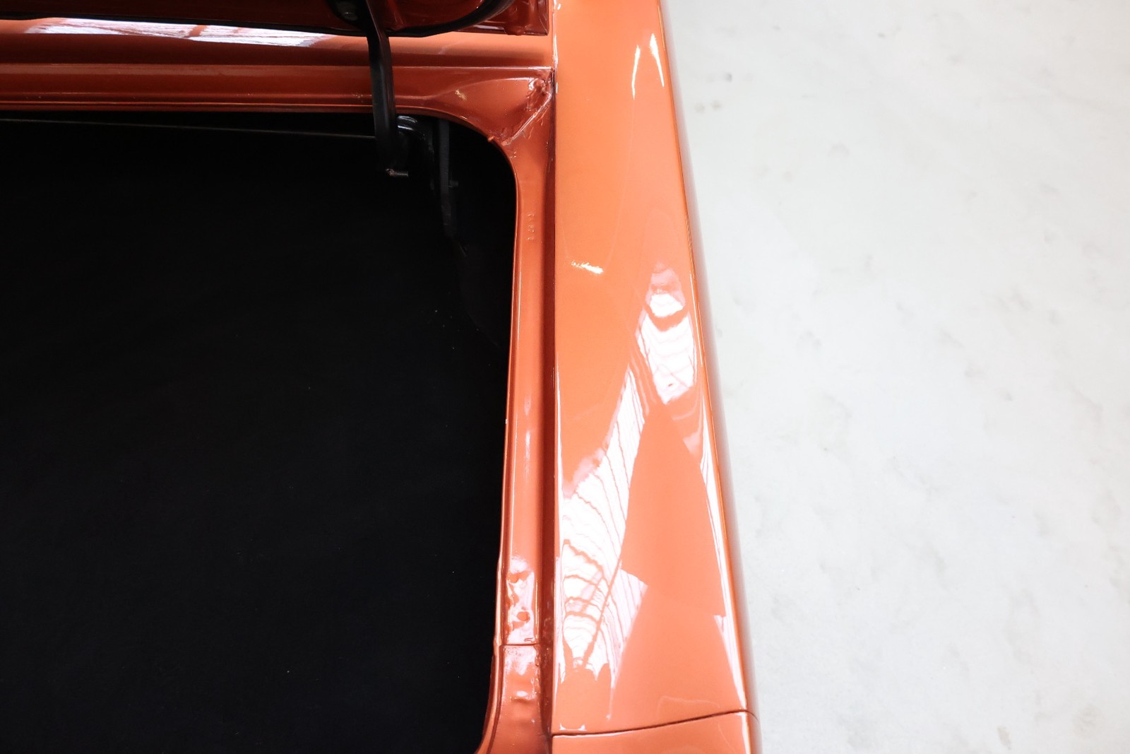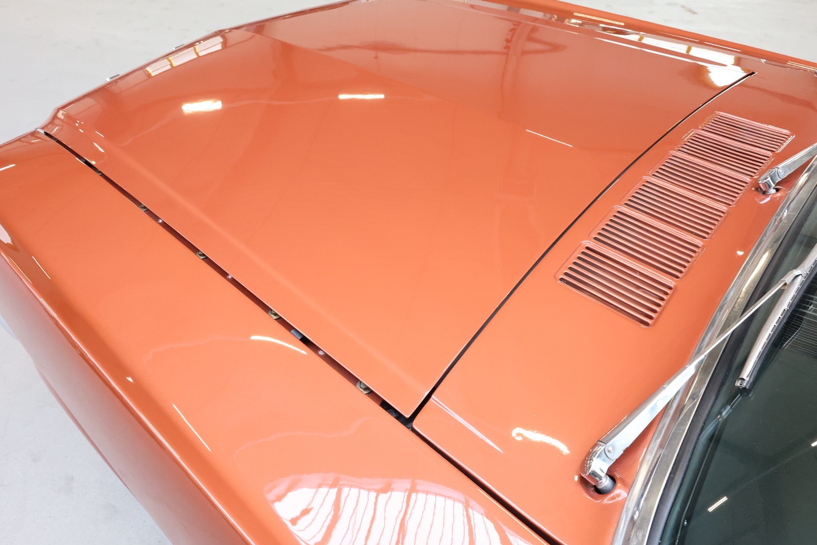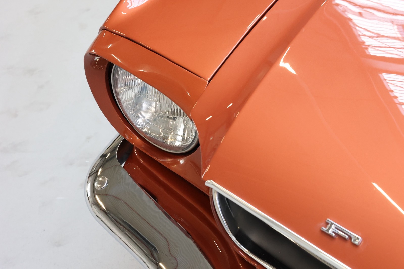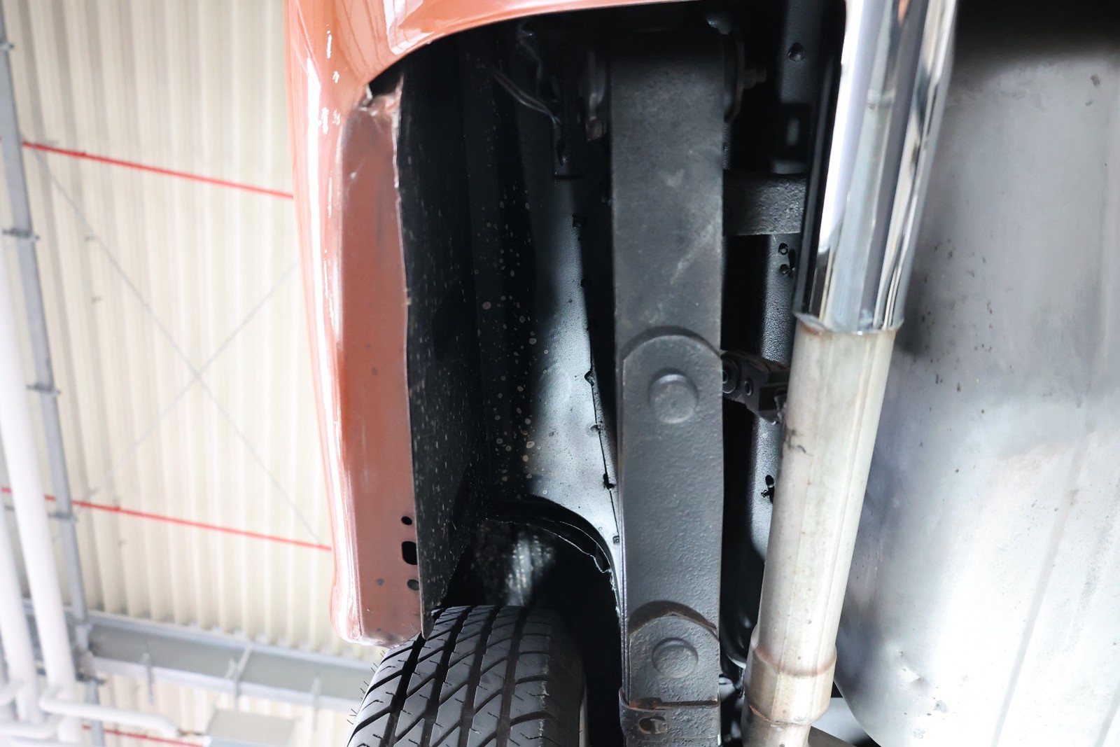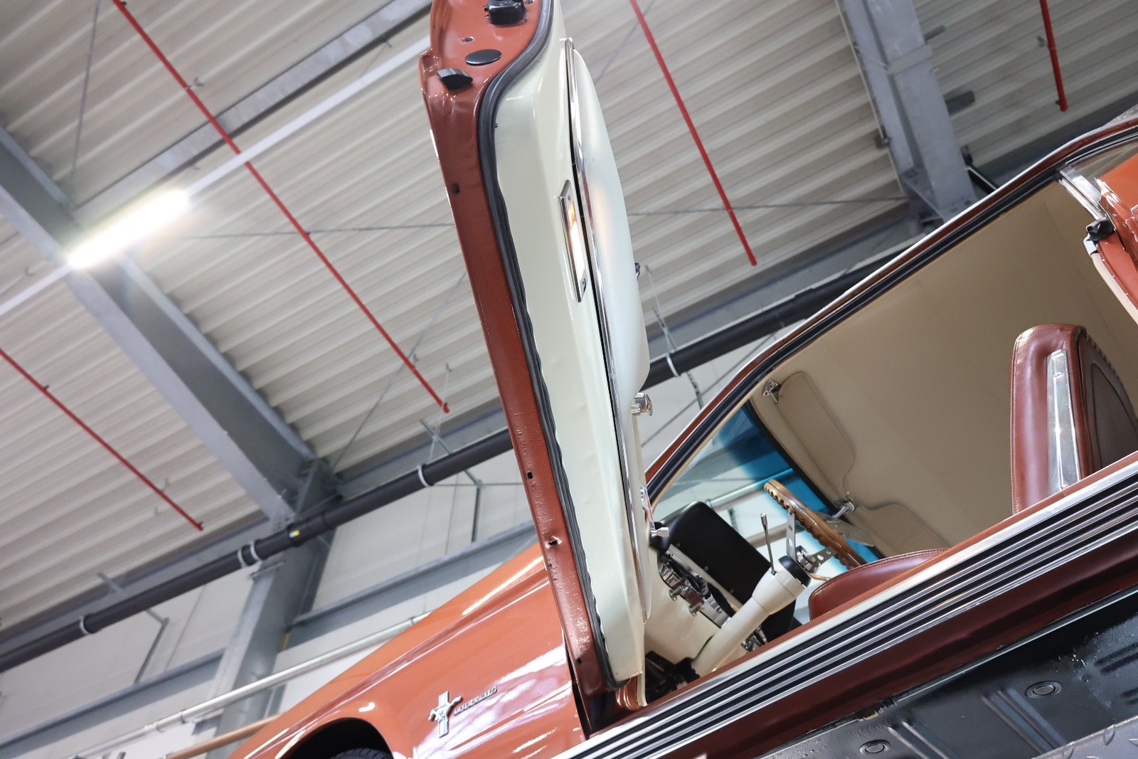 Sprechen wir gerne etwas mehr über die Blechbeschaffenheit dieses Ponys. Die Karosserie befindet sich einem sehr schönen und originalen Zustand. Die schöne Lackierung in Emberglow wurde vor etwa 10 Jahren neu gemacht, sie präsentiert sich mit viel Glanz und ist in einem ganz tollen Zustand. Original wurde das Pony in dieser Farbe ausgeliefert, die es auch nur 1966 für den Mustang in dieser Form gab. Oftmals werden Mustangs in anderen Farben umlackiert, schön ist es doch, wenn sich das Auto auch 60 Jahre später immer noch in der gleichen Farbe zeigt. Das schwarze Vinyldach befindet sich ist in einem tadellosen Zustand und weist keinerlei Rostprobleme auf. Die Innenausstattung ist im zweifarbigen Pony-Deluxe Interior gehalten, was sich farblich dem äußeren anschließt und zusätztlich noch in weiss gehalten ist. Also jetzt mal ehrlich, das sieht einfach richtig gut aus und passt mega gut zum Mustang. Auch eine Mittelkonsole sowie ein Holzlenkrad zieren den Innenraum, beides macht sich sehr gut und wird gerne gesehen. Zudem haben wir dem Pony einen neuen Dachhimmel spendiert.