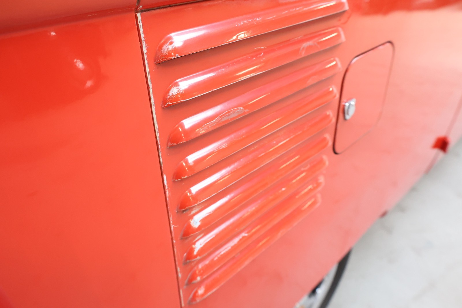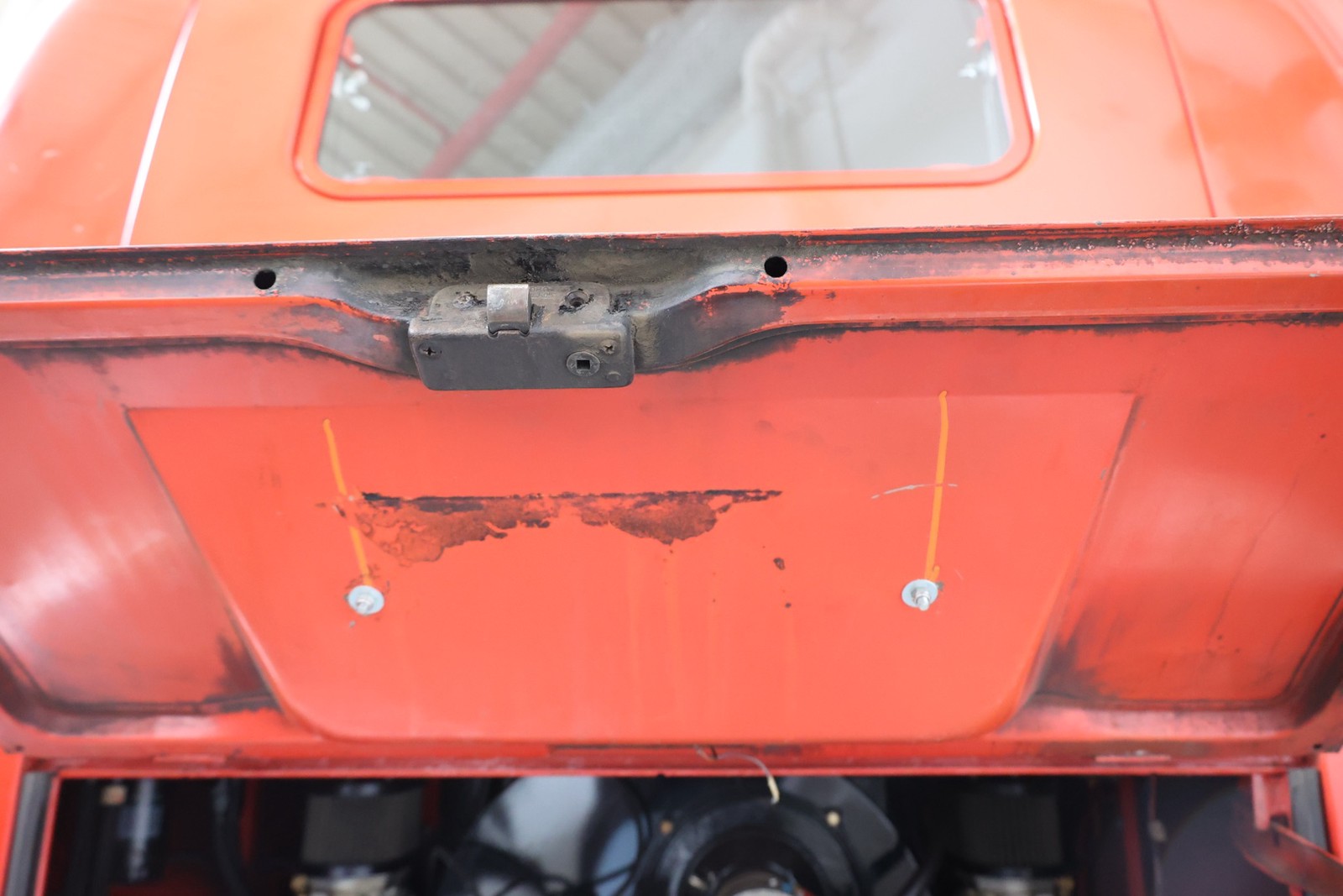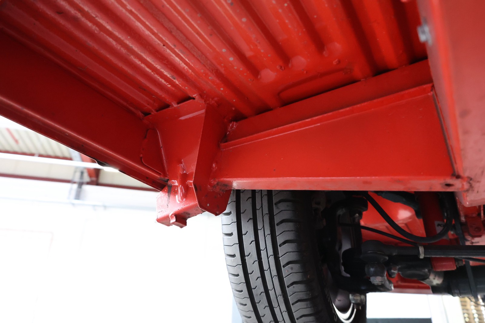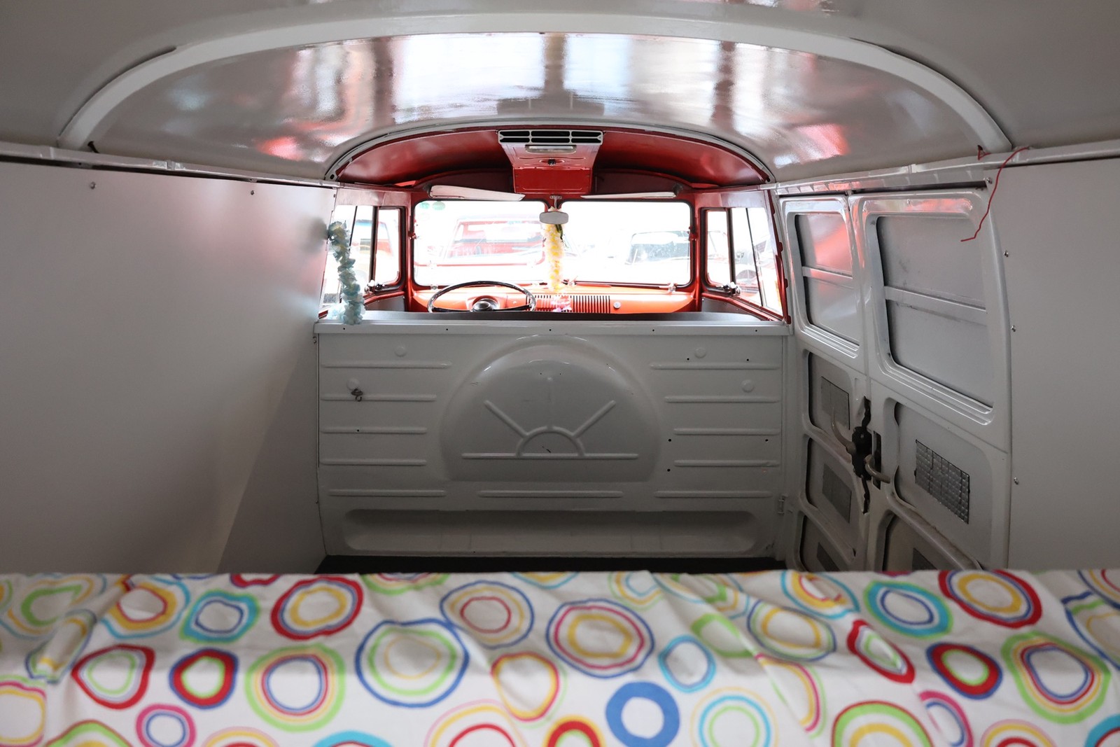 Die gesamte Technik wurde mit Verstand aufgewertet. Ein stärkerer Motor mit 122 PS, 40er Weber Vergaser und größerer Ölkühlanlage inkl. Zusatzgebläse sowie einer 38er CSP Python Abgasanlage wurden verbaut. Der Motor läuft perfekt und produziert wahnsinnig gute Leistung, ein Leistungsdiagramm ist vorhanden, die Leistung lässt sich nachweisen. Für die sichere Verzögerung sorgt eine Porsche 944 Bremsanlage mit 4-Kolben Wilwood Sätteln inklusive Bremskraftverstärker. Aufgrund der Tieferlegung wurde eine 3 Zoll gekürzte Dog Bag Vorderachse, die zusätzlich noch verstärkt ist, verbaut. Fuchs Replica Felgen (eingetragen mit Tüv) stehen dem T1 mehr also gut, eine bessere Wahl kann kaum getroffen werden. Der Wilwood Bremssattel, welcher durch die Felgen zu sehen ist, lässt in Verbindung mit den Felgen drauf schließen, dass es sich nicht um eine Originalkonfiguration handelt, es sich wahrscheinlich um einen Sleeper handelt, ein unauffälliges Auto also, was aber richtig viel Power hat. Na ja, unauffällig ist ein T1 jetzt gerade nicht, allerdings wird es nur wenige geben, die optimierte Performance Technik verbaut haben, schon garnicht ein ehemaliges Feuerwehrfahrzeug.
