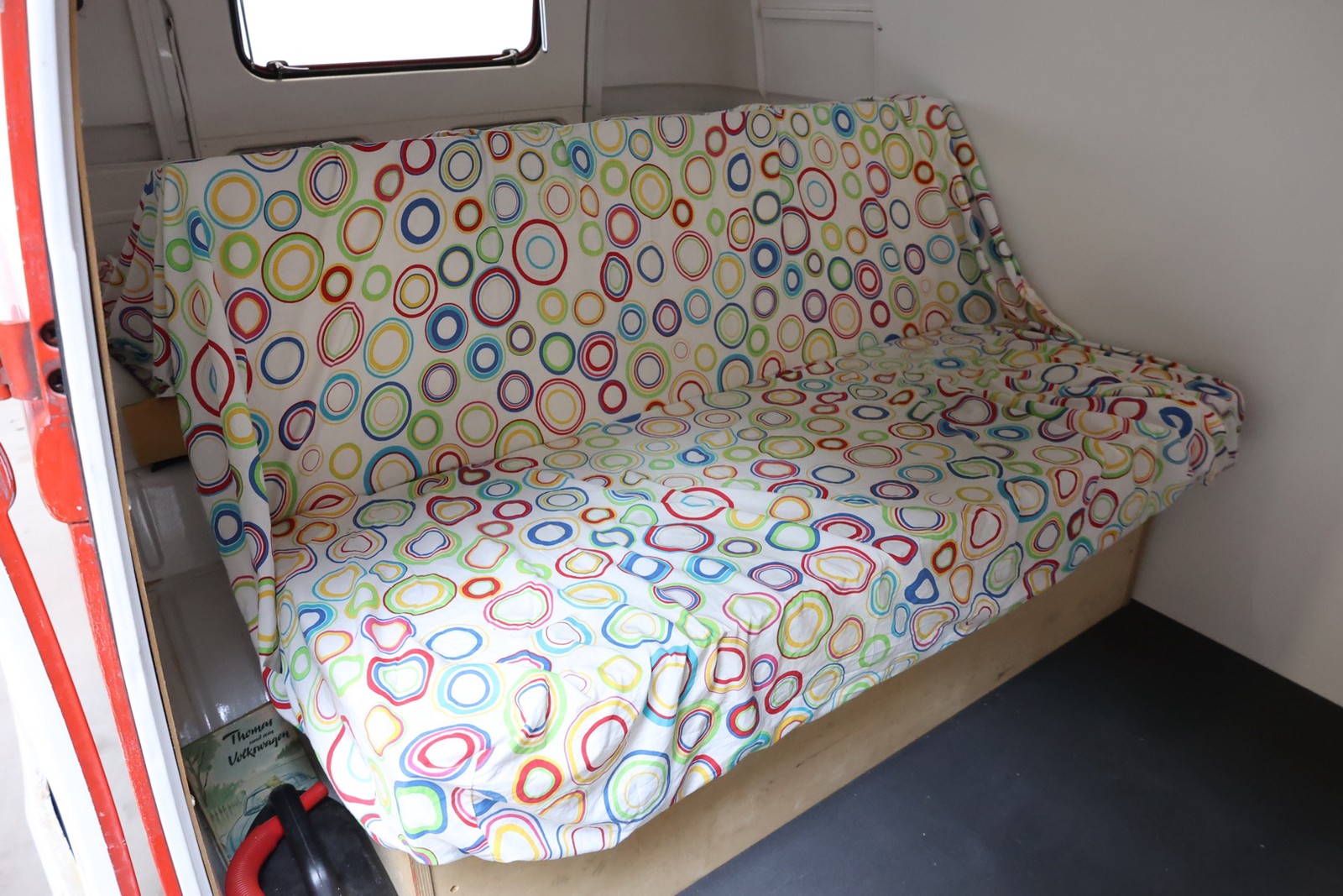 Im Fond wurde eine Sitzbank durch den Besitzer verbaut, die auch eine Klappsitzbank ist und natürlich zm Bett umgebaut werden kann und eine Liegefläche von 1,40m x 1,95m hat.